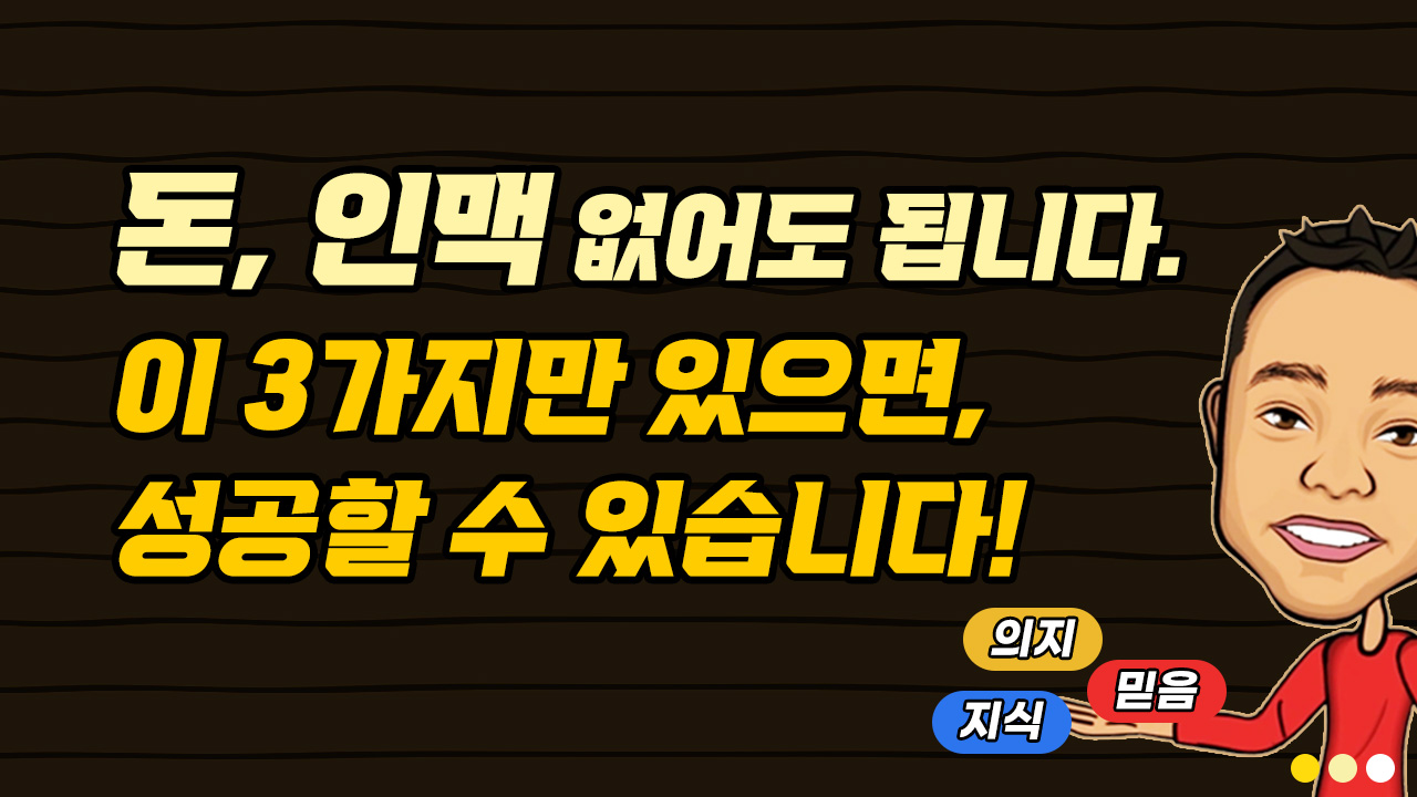 돈 없고 빽 없어도 됩니다. 인맥도 없어도 됩니다.