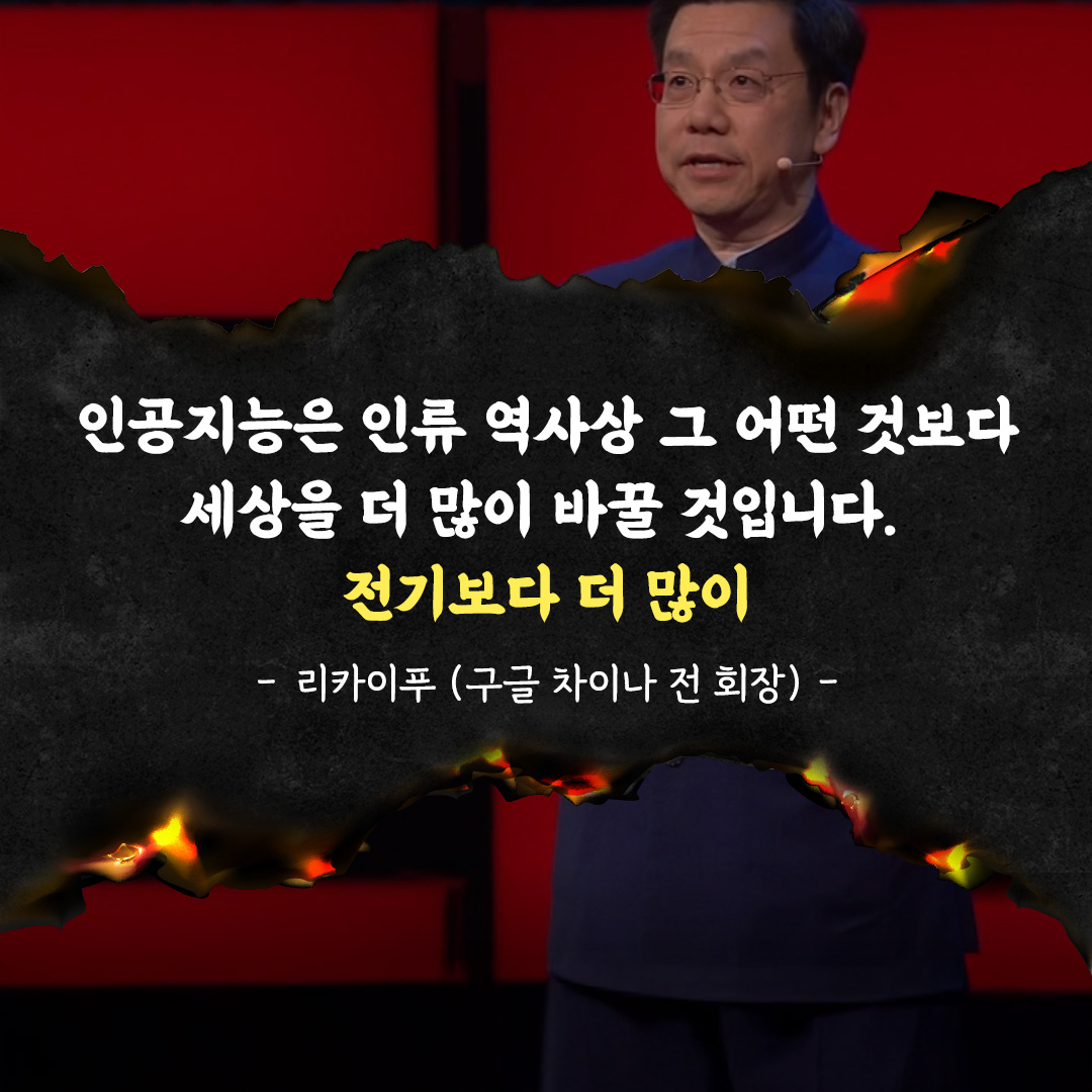 오늘날 인공지능(AI)은 단순한 기술을 넘어 사회, 경제, 문화 전반에 걸쳐 엄청난 변화를 일으키고 있습니다. AI는 빅데이터 분석, 자동화, 개인 맞춤 서비스, 의료, 금융 등 다양한 분야에서 핵심 동력으로 작용하고 있습니다. 리카이푸 전 구글 차이나 회장이 “AI는 전기보다 더 많은 변화를 일으킬 것”이라고 강조한 이유도 바로 이 때문입니다. AI는 새로운 기회를 창출하지만, 이를 활용하지 않으면 도태될 수밖에 없습니다.