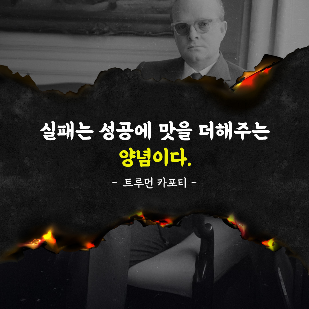 트루먼 카포티의 말처럼 실패는 성공에 '양념'과도 같습니다. 이 양념은 우리가 성공의 가치를 더 깊이 느끼고, 실패를 통해 얻은 배움이 성공의 달콤함을 더욱 진하게 만들어 줍니다.