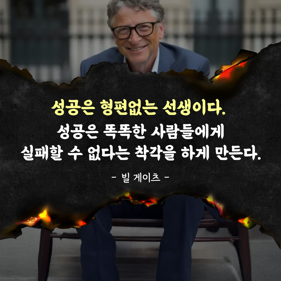 성공은 우리의 목표이지만, 때로는 우리의 성장을 막는 장애물이 되기도 합니다. 빌 게이츠의 말처럼 성공에 안주하지 않고, 실패를 두려워하지 않으며, 끊임없이 배우고 도전하는 자세를 가져야 합니다. 지금의 성공에 만족하지 말고, 다음 단계로 나아갈 준비를 하세요. 실패와 도전 속에서 얻은 교훈이야말로 진정한 성공을 이루는 밑거름이 될 것입니다.